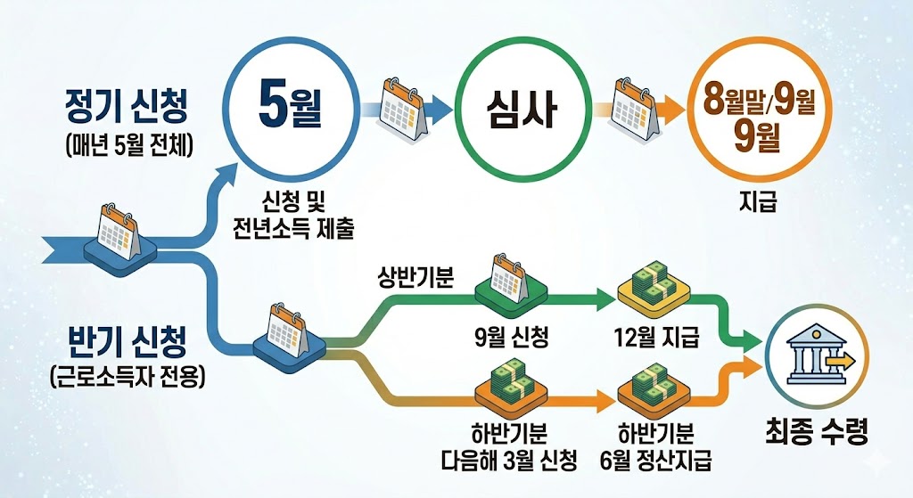 3. 신청 기간 및 지급 시기 (정기 vs 반기)